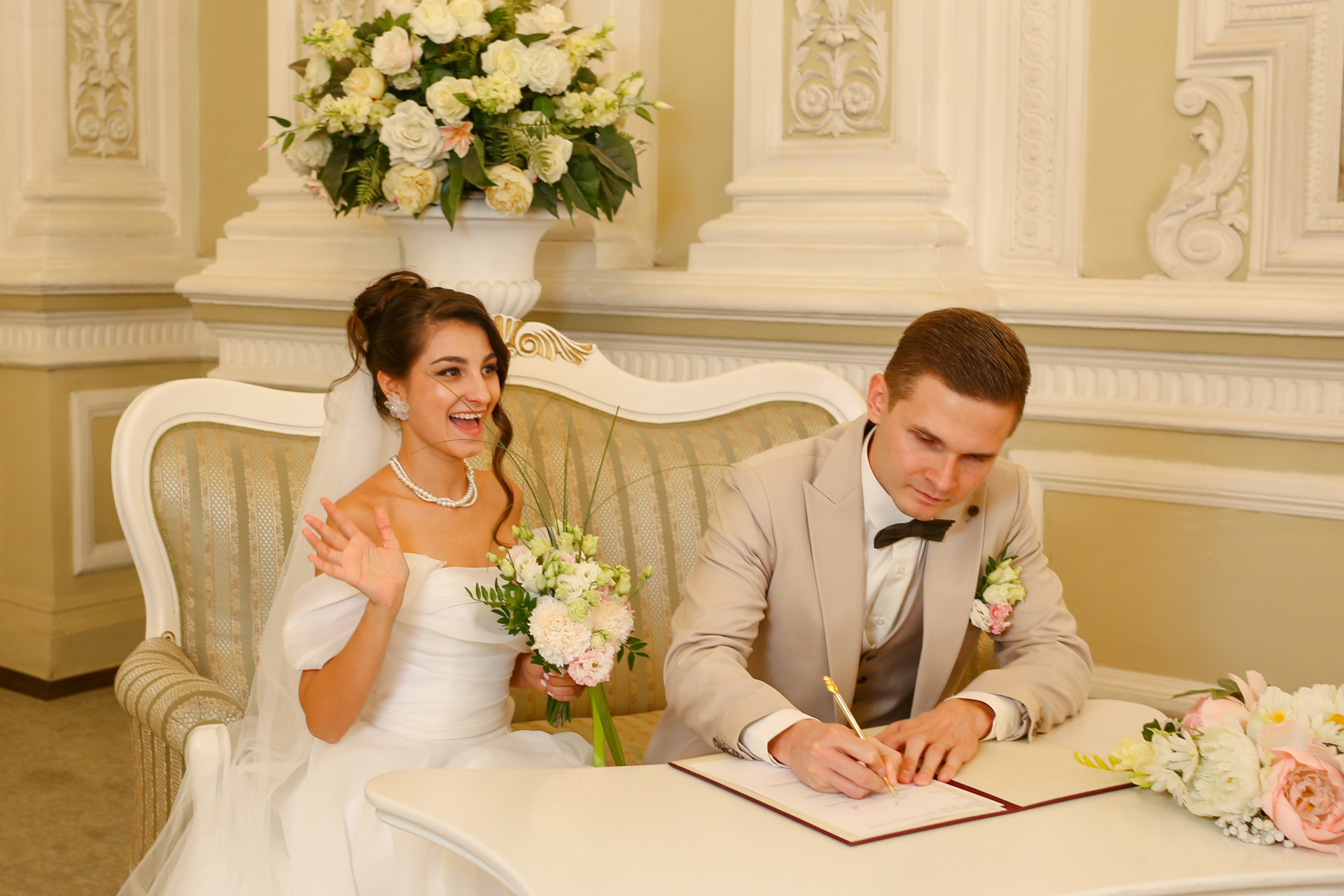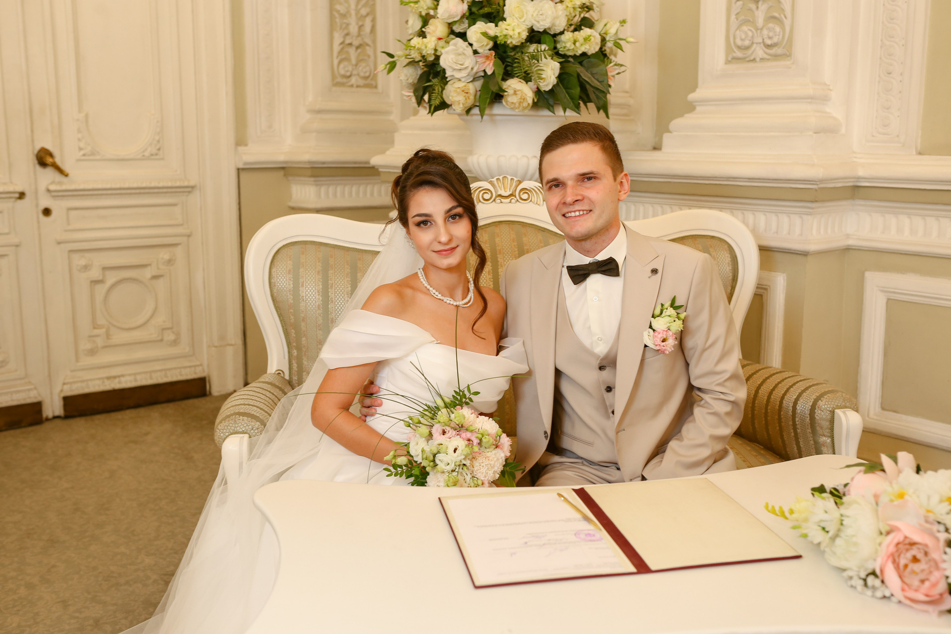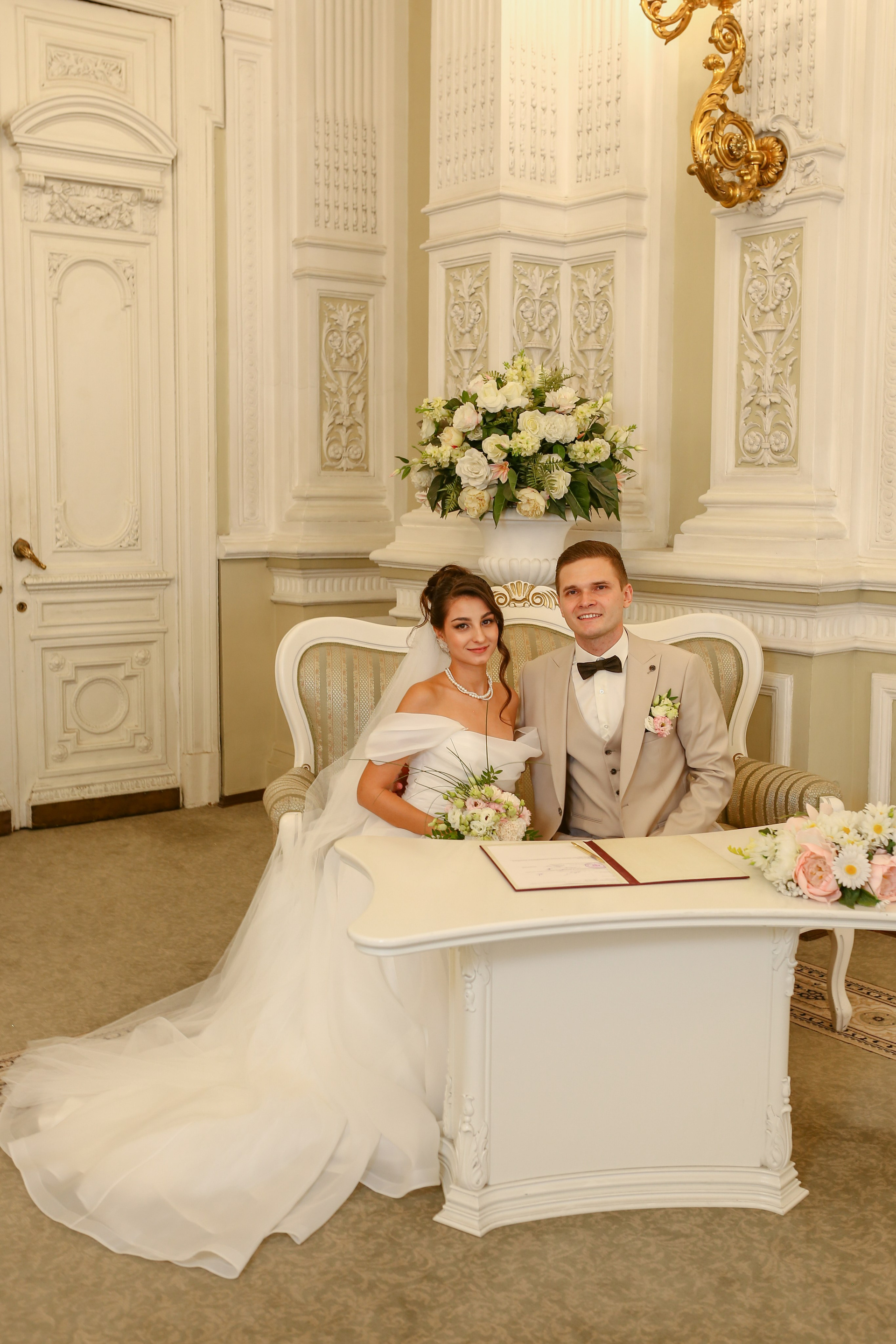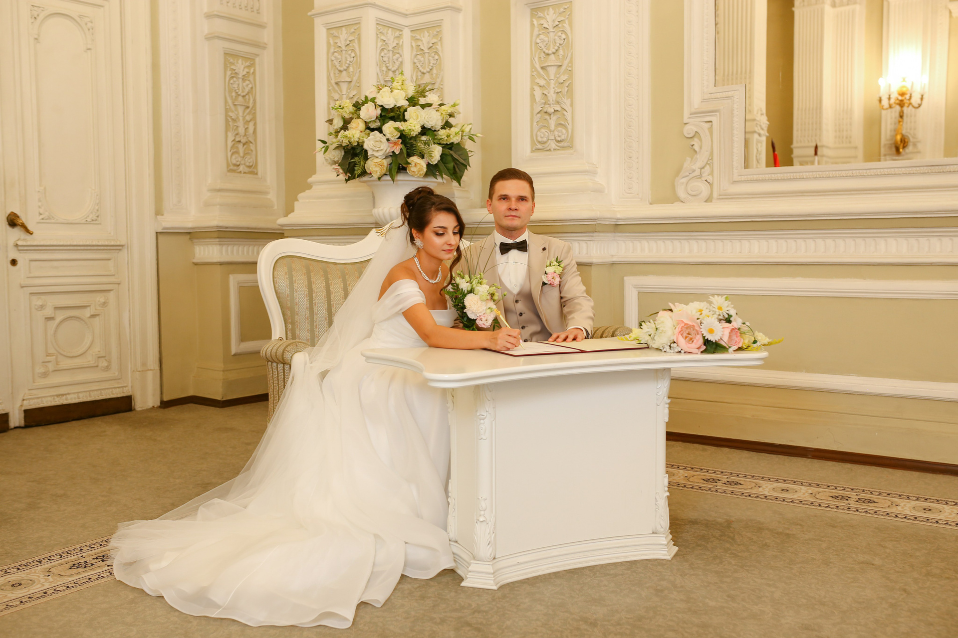 Классические кадры, запечатлевшие торжественный момент во Дворце бракосочетания. Снимки передают искренние эмоции, волнение и счастье молодоженов, превращая мгновения в вечную историю любви.