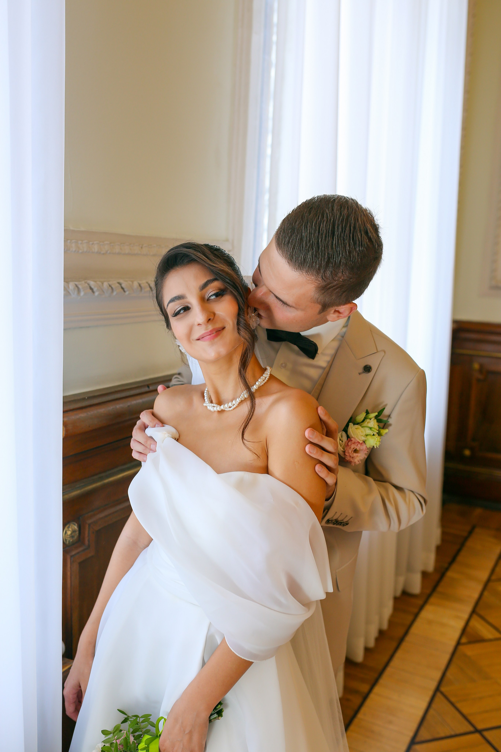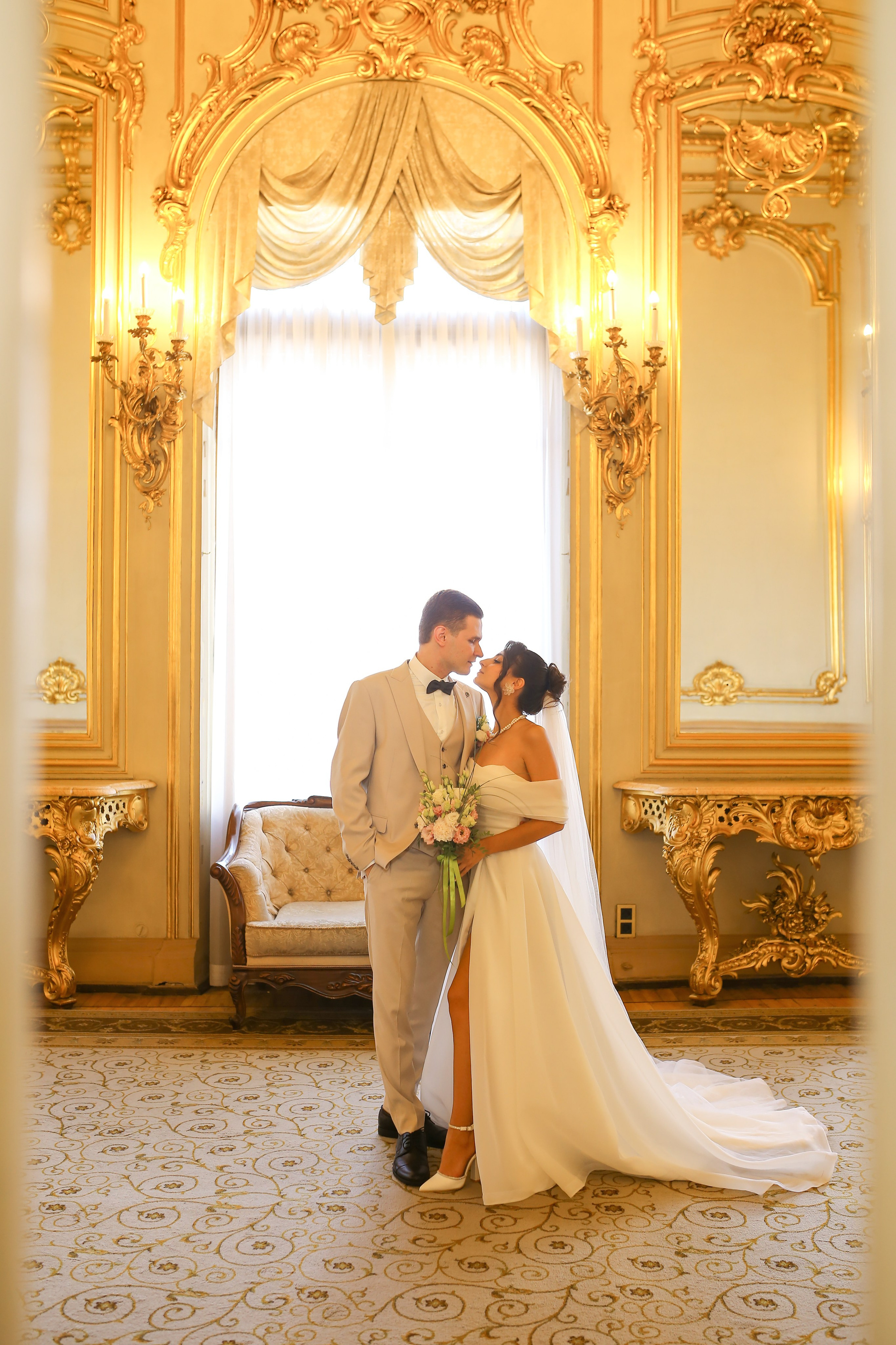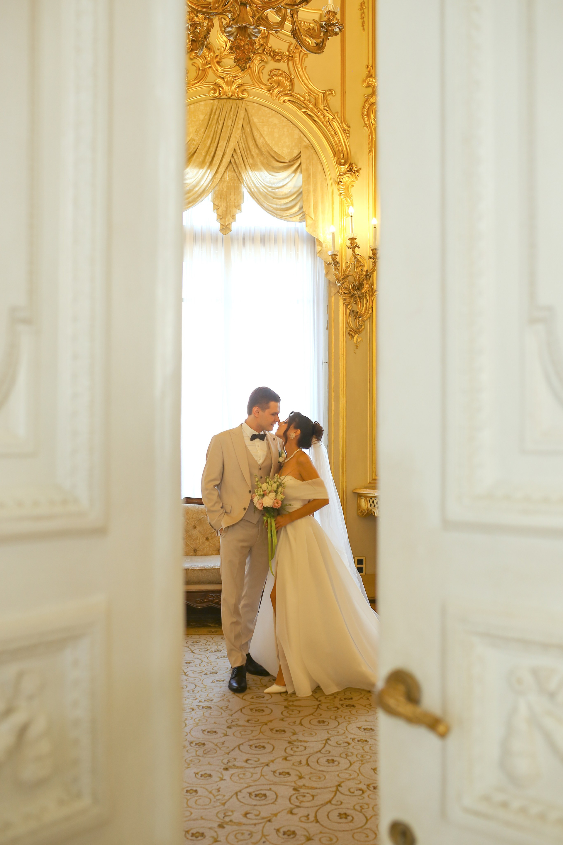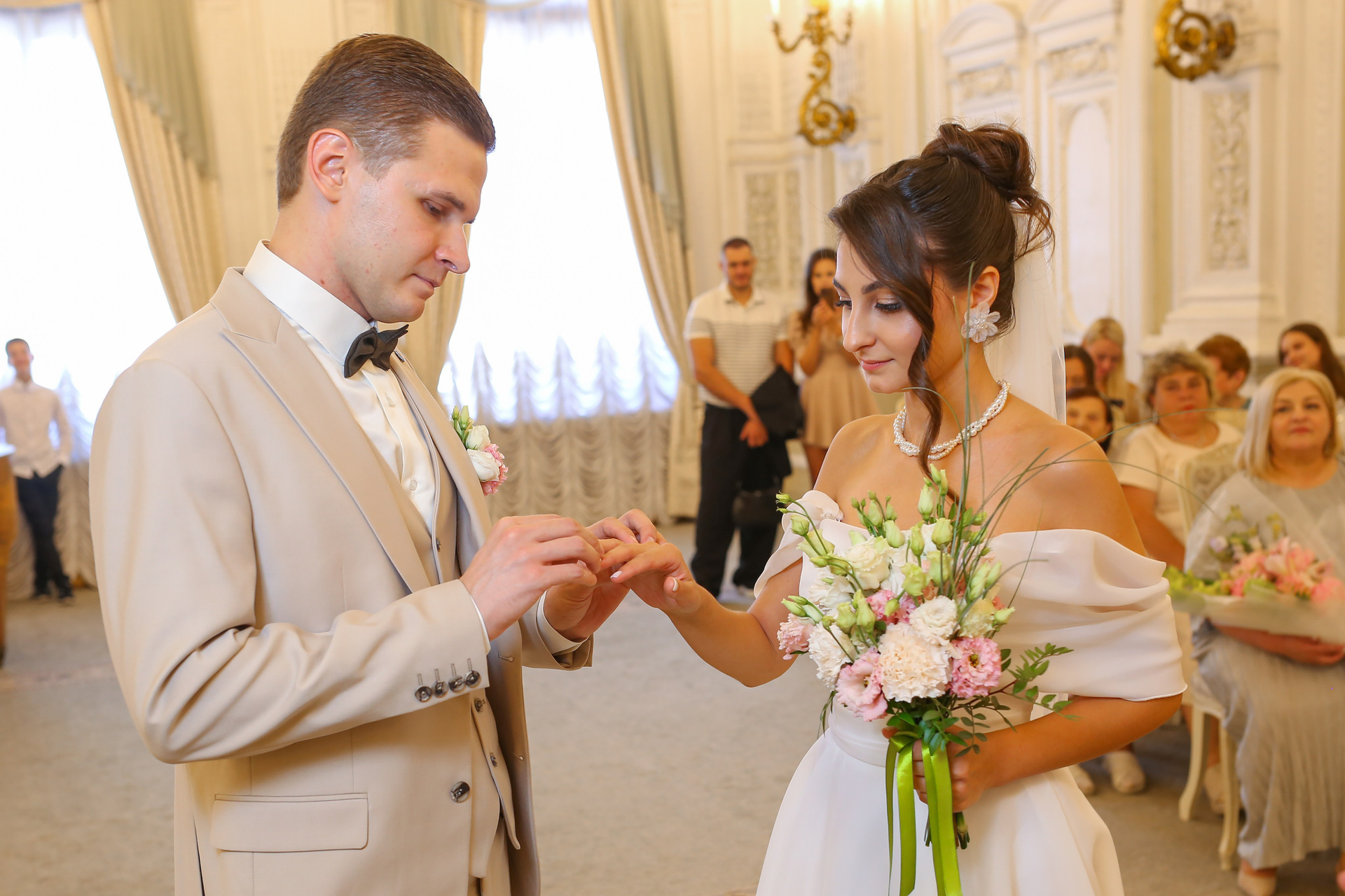 Классические кадры, запечатлевшие торжественный момент во Дворце бракосочетания. Снимки передают искренние эмоции, волнение и счастье молодоженов, превращая мгновения в вечную историю любви.